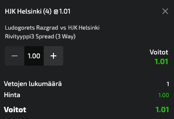 HJK:lle neljä maalia eteen – jättikerroin 3O.OO