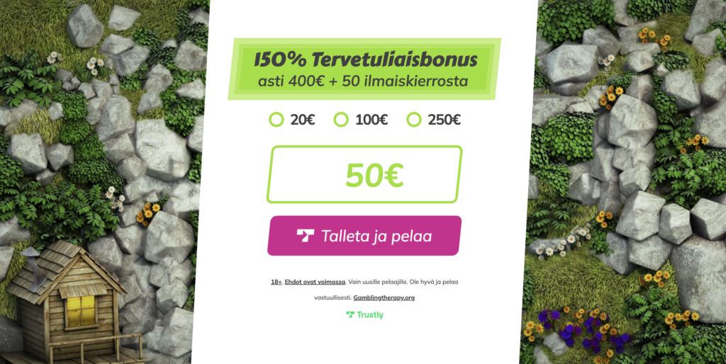 - Saat heti 75 euroa pelirahaa + 50 ilmaiskierrosta!