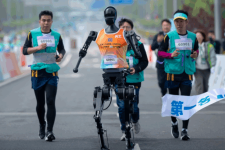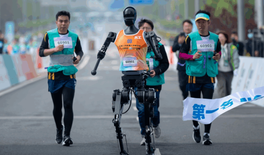 Tämä tapahtui Pekingin E-Townin alueella 19. huhtikuuta 2025. Juoksun starttasi yli 12 000 ihmistä ja niiden mukana 21 robottia. Robotit juoksivat omalla kaistalla, jotta ihmiset pysyisivät turvassa. (Uutisotsikot terminaattoreista ei olisi mukava lopputulos.)